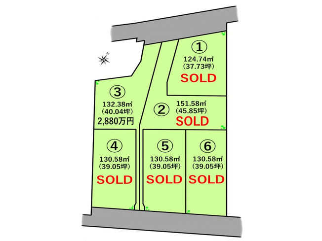 全6区画の開発分譲地!平均39坪のゆとりある敷地♪建築条件はございませんのでご希望のハウスメーカーで建築して頂けます※残り2区画となりました