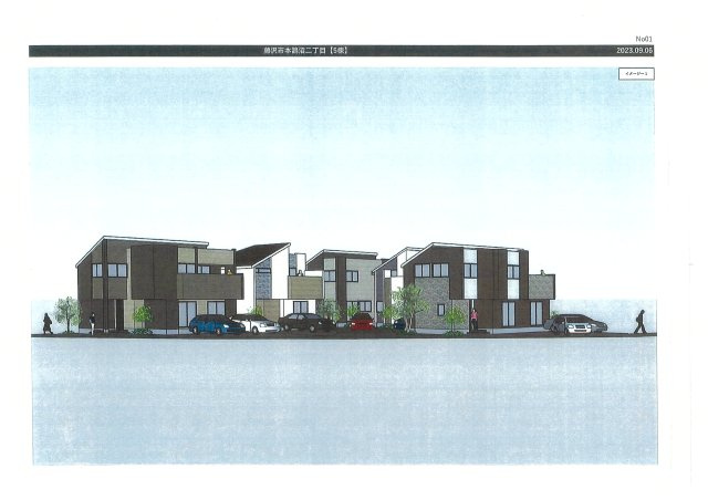 【分譲地全体の完成イメージ】建築条件なし売地につきハウスメーカーで自由に建築可能ですが、プランにより全棟カースペース2台可!素敵な企画案もご用意しております♪
