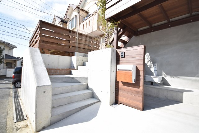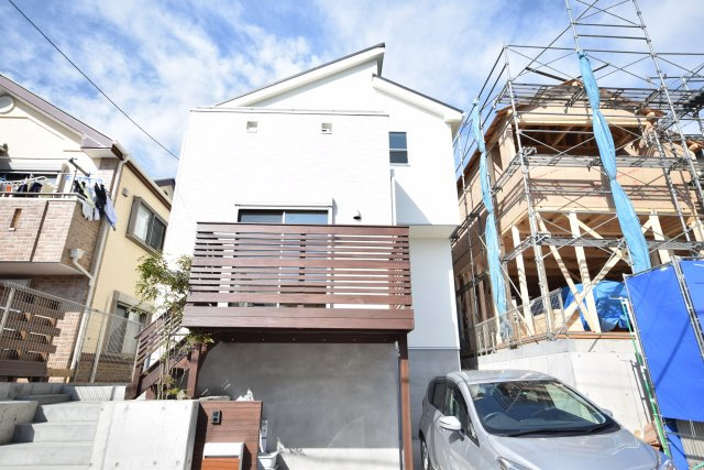 ウッドデッキにひな壇☆プラシバシーも守れて、陽当たりも、風の通りも良好な新築一戸建てです☆藤沢市でも高台の場所になります☆
